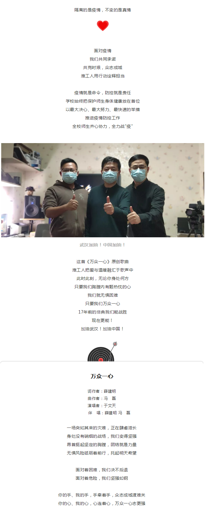 淮工原創(chuàng)歌曲《萬(wàn)眾一心》暖心上線,武漢加油!中國(guó)加油!